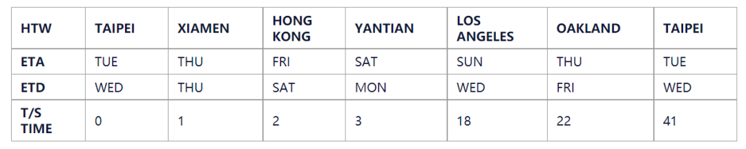 ■ 航程:14 天快船從 YANTIAN to LONG BEACH,CA